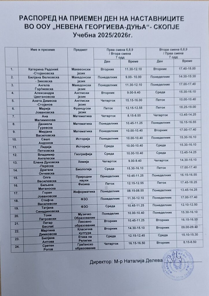 Home → web → Распоред за приемен ден на родители (предметна настава)